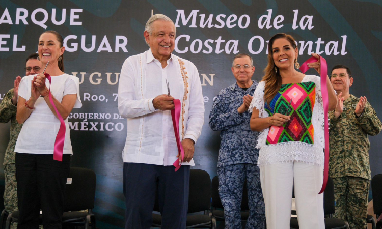 Tulum.- Al participar en la inauguración del Parque del Jaguar y el Museo de la Costa Oriental, en Tulum, con el presidente Andrés Manuel López Obrador y la presidenta electa Claudia Sheinbaum, la gobernadora Mara Lezama Espinosa afirmó que estas acciones permiten reafirmar la importancia de nuestros ancestros, nuestra dignidad y todas las raíces y tradiciones que son punto común y la inspiración para ser mejores gobernantes y dirigir los destinos de este pueblo llamado Quintana Roo.