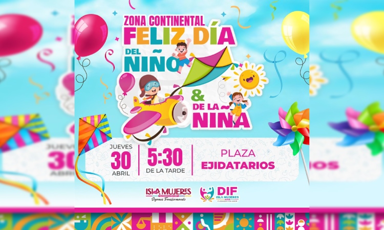 Isla Mujeres, Quintana Roo a 25 de abril de 2026.– Con el objetivo de brindar momentos de alegría, convivencia y sano esparcimiento a la niñez, el Ayuntamiento de Isla Mujeres, encabezado por la alcaldesa Atenea Gómez Ricalde, a través del Sistema para el Desarrollo Integral de la Familia (DIF) Municipal, invita a celebrar el Día del Niño y la Niña en la Zona Continental con una gran feria.
