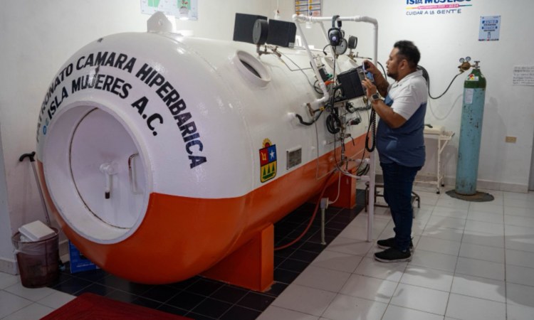 Isla Mujeres, Quintana Roo a 22 abril de 2025.– Con el firme compromiso de brindar un servicio óptimo y seguro tanto para la comunidad pesquera como para quienes requieren tratamientos médicos especializados, el Gobierno de Isla Mujeres, que encabeza la Presidenta Municipal Atenea Gómez Ricalde, realiza trabajos de mantenimiento preventivo y correctivo a la cámara hiperbárica.