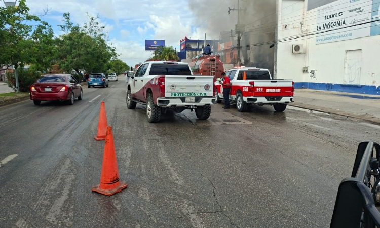 Cancún, Q. R., a 2 de octubre de 2025.- Elementos del Heroico Cuerpo de Bomberos de Cancún lograron controlar un incendio registrado en un local abandonado en la Supermanzana 69, sobre la Av. López Portillo.