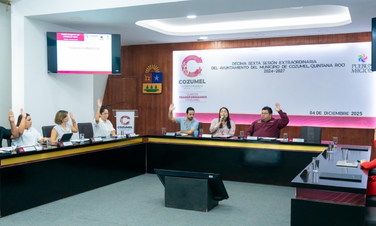 Cozumel, 04 de diciembre del 2025. – El Presidente Municipal, José Luis Chacón Méndez, encabezó la Décimo sexta sesión extraordinaria de Cabildo, en la que el cuerpo colegiado aprobó por unanimidad recursos destinados a equipar y modernizar el Centro de Acopio de Materiales Reciclables (CAMAR). Esta decisión permitirá que, por primera vez en su historia, Cozumel adopte el círculo virtuoso del reciclaje. Durante la misma sesión, también se designó el recinto oficial para la celebración del 176 Aniversario del Decreto de Creación del Pueblo de San Miguel de Cozumel, que tendrá lugar el próximo 10 de diciembre a las 9:00 de la mañana.