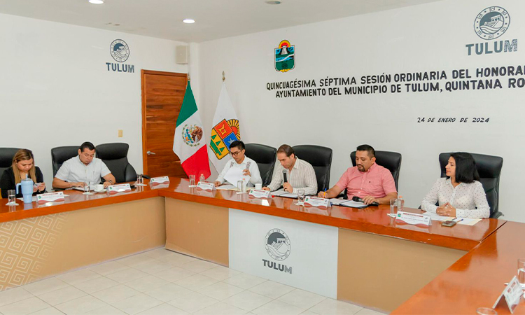 Tulum, 24 de enero del 2024.- En la Quincuagésima Séptima Sesión Ordinaria de Cabildo, el Ayuntamiento de Tulum, aprobó considerar la compatibilidad del uso de suelo del derecho de vía del “Tren Maya”, específicamente en el tramo 5 sur y tramo 6 que se encuentran dentro de la jurisdicción del municipio de Tulum, el cual proyecta incrementar la derrama económica del turismo en la Península de Yucatán.