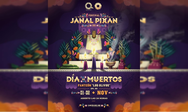 Cancún, Q. R., a 29 de octubre de 2025.- El Ayuntamiento de Benito Juárez, invita a los cancunenses y visitantes a asistir al Festival “Janal Pixan 2025”, a la “Cena de Ánimas” y al “Día de Muertos”, que se llevarán a cabo el 30 y 31 de octubre, así como el 01 y 02 de noviembre en distintos puntos de la ciudad, con un amplio programa cultural, artístico y gastronómico.