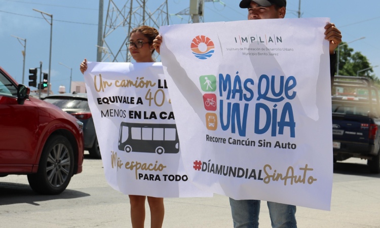 Con frases creativas se invitó a la población a reflexionar sobre la manera en que usan las calles, por lo que el personal de la dependencia portó carteles con los mensajes: “¿Estrés? Bájate del auto y da una caminata” o “Este cartel no contamina. Tu bici tampoco. Muévete en bici por Cancún”, entre otros, que no solo generaron sonrisas sino al mismo tiempo, conciencia sobre la importancia de caminar, pedalear y usar el transporte público.