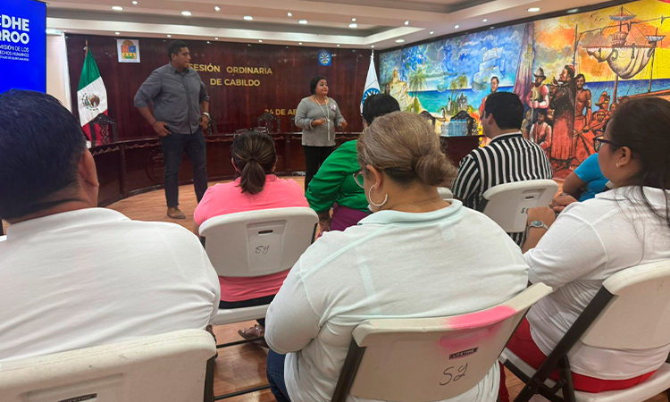Con la finalidad de que los servidores públicos conozcan sus obligaciones en materia de derechos humanos para que desde el ámbito de sus competencias pongan en práctica conductas de respeto, protección, promoción y la garantía de los derechos humanos de todas las personas, la Comisión de los Derechos Humanos de Quintana Roo en coordinación con el Ayuntamiento de Isla Mujeres impartió la plática “Derechos Humanos en el Servicio Público y su Enfoque” en la Sala de Cabildo.