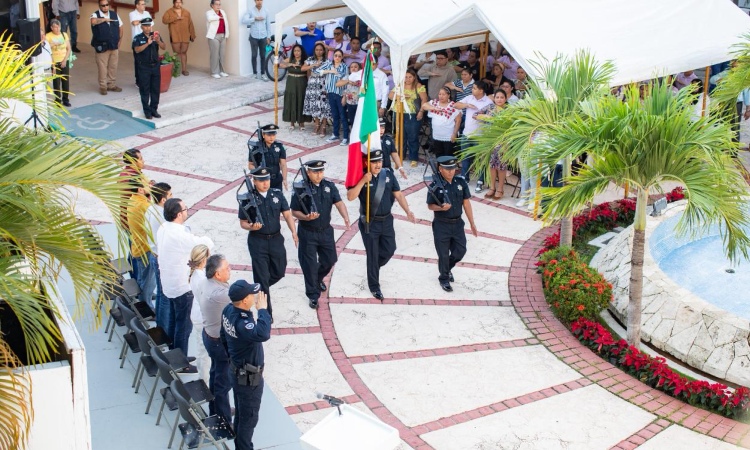 Durante la ceremonia cívica, que se llevó a cabo en el patio central del antiguo Palacio Municipal, se contó con la presencia del cuarto regidor Uri Carmona Islas; el secretario de Salud, José Antonio Uribe Trujillo; Jesús Rodríguez Herrera, director general del Sistema DIF Playa del Carmen; el comandante Diego Amílcar Morelos Ramírez, director de Proximidad Social; el secretario de Protección Civil, Prevención de Riesgos y Bomberos, Darwin Covarrubias, y representantes de distintas áreas del gobierno municipal.
