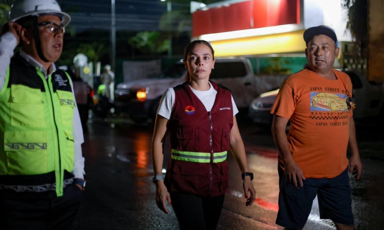 Cancún, Q. R., a 22 de octubre de 2025.- Como parte de las acciones para prevenir encharcamientos durante esta temporada de lluvias, la Presidenta Municipal, Ana Paty Peralta, junto al secretario general del Ayuntamiento, Pablo Gutiérrez Fernández, supervisaron los trabajos de desazolve y mantenimiento urbano que llevó a cabo la Dirección General de Servicios Públicos en la avenida Andrés Quintana Roo, a la altura de la Supermanzana 95