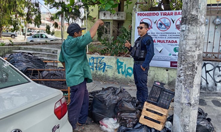 Ese mismo día, a las 20:10 horas, en la calle Tankah, en la Supermanzana 26, un sujeto de 34 años fue sorprendido con una bolsa color verde que contenía aproximadamente 1 kilogramo de basura doméstica, dejándola en frente a una lona en donde se indica que está prohibido tirar basura en la vía pública.
