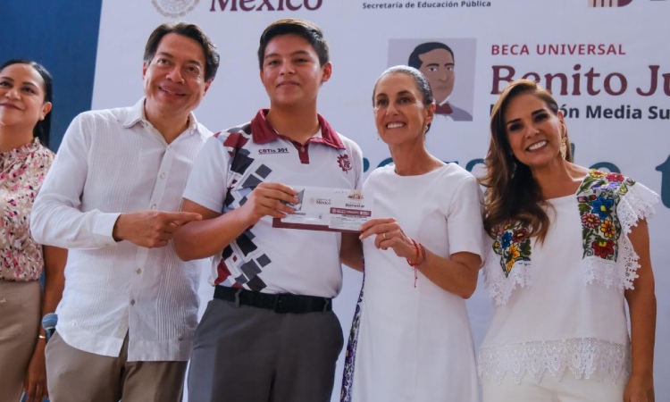 Durante la Asamblea, el secretario de Educación Mario Delgado anunció que la Presidenta Claudia Sheinbaum aprobó que más de 140 mil niñas y niños de las primarias públicas de Quintana Roo reciban, a partir del año que entra, sus becas. Entre primaria, secundaria, preparatoria y Jóvenes Construyendo el Futuro, serán más de 300 mil becas.