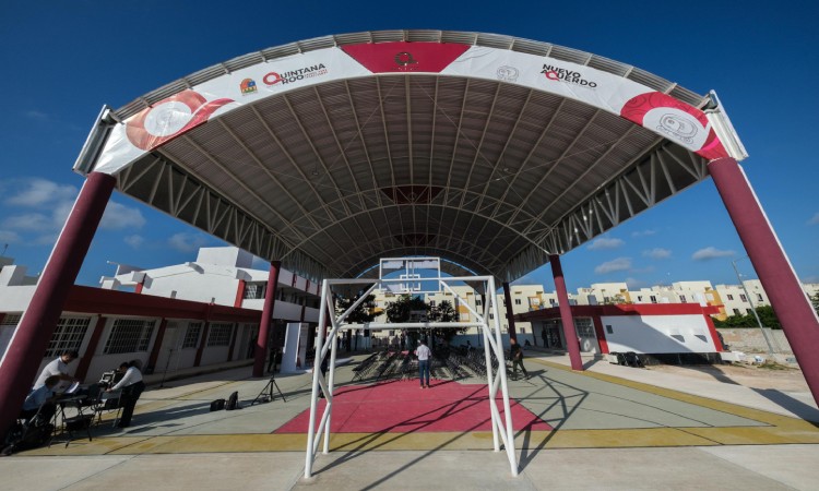 Por su parte, el encargado de la dirección del IFEQROO, Aldo Castro Jiménez, dio a conocer que con una inversión de 4.2 millones de pesos, la gobernadora entregó un domo de 17 x 30 metros y obra exterior, beneficiando a 206 alumnos y alumnas.
