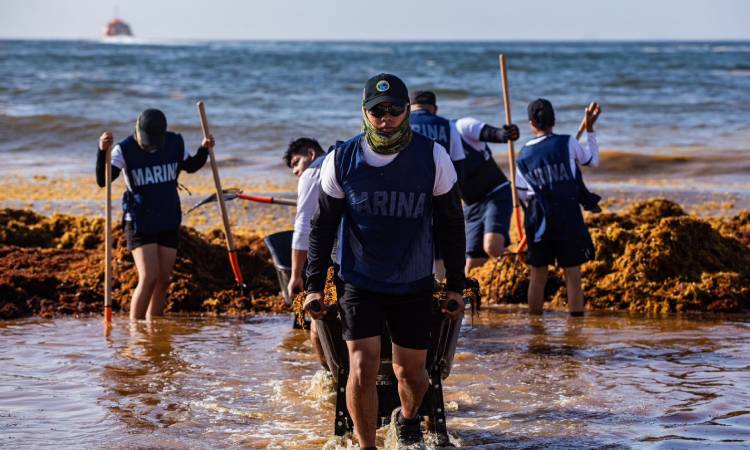 El operativo se desarrolla en dos fases: una primera de recolección manual desde muy temprano, seguida del traslado y disposición final del sargazo con maquinaria especializada, lo que ha permitido contener hasta el 80% del alga que ha arribado a las costas en esta temporada.
