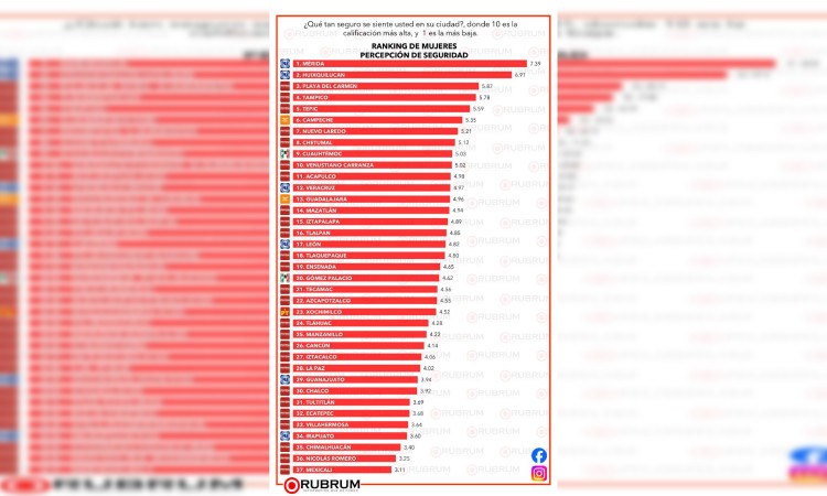 El estudio, realizado entre el 2 y el 7 de junio de 2025, evaluó la percepción ciudadana sobre diversos temas, entre ellos la seguridad, donde Playa del Carmen se colocó en el cuarto lugar general y el tercero entre los municipios más seguros con alcaldesas.