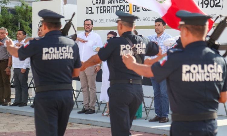 Playa del Carmen, Quintana Roo, 24 de noviembre de 2025.– El Gobierno de Playa del Carmen, que encabeza la presidenta municipal Estefanía Mercado, conmemoró hoy el 123 aniversario de la creación del Territorio Federal de Quintana Roo, con una ceremonia cívica para rendir homenaje a este acontecimiento histórico y fortalecer la identidad como quintanarroenses.