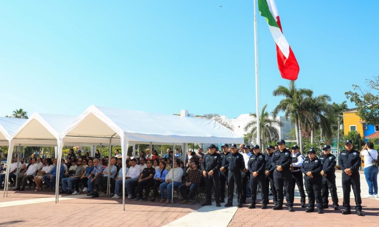 • El orador oficial, José Antonio Uribe Trujillo, secretario de Salud Municipal, refrenda el compromiso de la alcaldesa Estefanía Mercado de seguir trabajando para fortalecer la transformación de Playa del Carmen