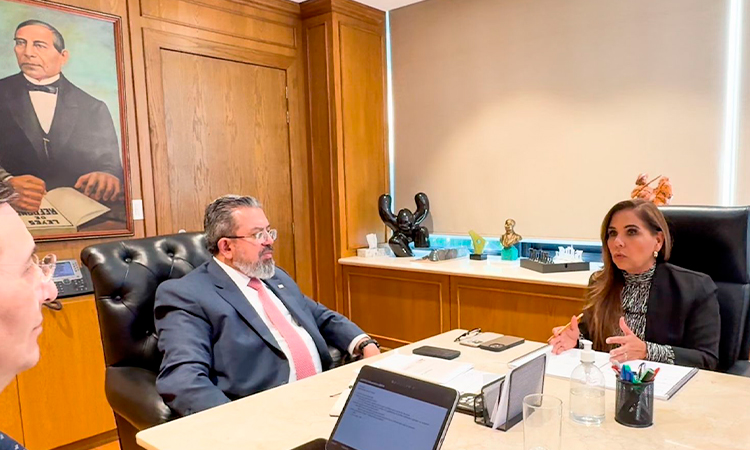 Como parte de una agenda en la Ciudad de México, la gobernadora Mara Lezama Espinosa y el secretario de Desarrollo Territorial Urbano Sustentable (SEDETUS) Armando Lara De Nigris, se reunieron con el titular de la SICT Jorge Nuño Lara, con quien revisaron diversos temas y también requerimientos que han emanado de las reuniones de seguridad del Aeropuerto Internacional de Cancún.