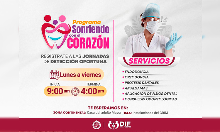 El Gobierno Municipal de Isla Mujeres, a través del Sistema para el Desarrollo Integral de la Familia (DIF Isla Mujeres), extiende una cordial invitación a la ciudadanía para que participen en las jornadas del Programa de Salud Bucal “Sonriendo con el Corazón”.
