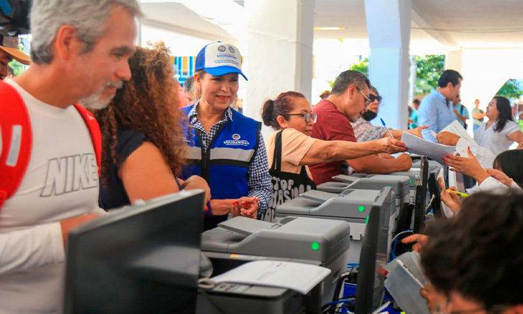 La presidenta Lili Campos pone ejemplo y es una de las que hoy pagaron su impuesto predial, formada en fila, como todos los ciudadanos