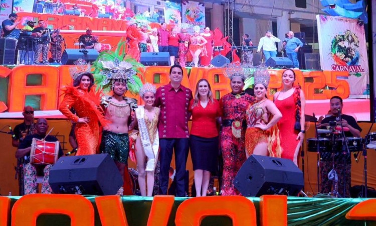 La comparsa de los Reyes del Carnaval 2025, Denisse I y Raúl I., también hizo lo propio y encendió el ánimo de los asistentes.