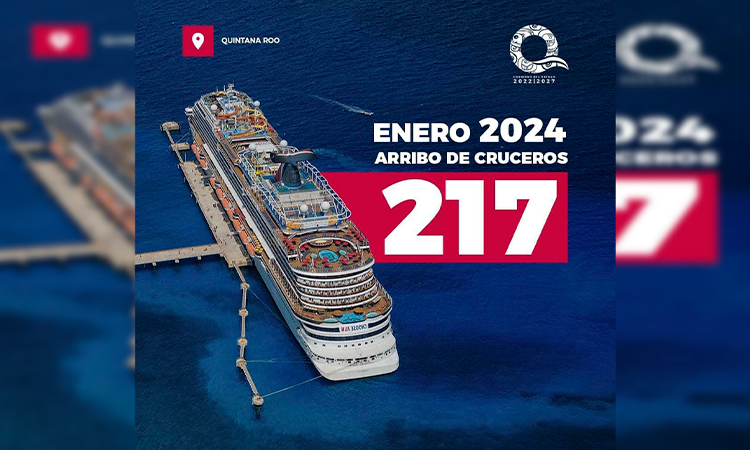 De acuerdo a la Secretaría de Turismo, en enero pasado Cozumel registró 151 cruceros, en tanto que Costa Maya 66, para hacer un total de 217 embarcaciones, mientras que en 2023 se alcanzaron 203 arribos.