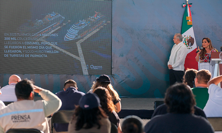 Afirmó que en esta Nueva Era del Turismo, Cozumel recibió el 68.5% de los cruceristas que llegaron al país, y que el Tren Maya acerca a este gran mercado turístico, pues la Isla de las Golondrinas está justo enfrente de Playa del Carmen.